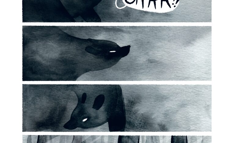 Nedoločnost do neke mere zaznamo tudi v minimalistični sliki, ki včasih obstoj določenih subjektov nakaže le z belimi pikicami, ki jih iz teme zaznamo kot oči. Večinoma pa imamo sicer v Oksi opravka z medvedi in medvedolikimi živalmi oziroma šintoističnimi podobami, kot smo jih lahko zasledili v animacijah studia Ghibli. Razlika med enimi in drugimi pravljicami pa je še najbolj opazna v pristopu do zgodbe. Kjer Ghibli ostaja v nežnem in luštkanem svetu, se Ahokoivu raje odloči za recimo brutalen umor jelena. Trenutka smrti sicer nikoli zares ne vidimo, a prav to je tisto, kar ga naredi še strašnejšega. Oksi zato lahko razglasimo za prvinsko starinsko pravljico o začetkih sveta, ki ga ne olepšuje, a ga prav zato tako stvarno razlaga.